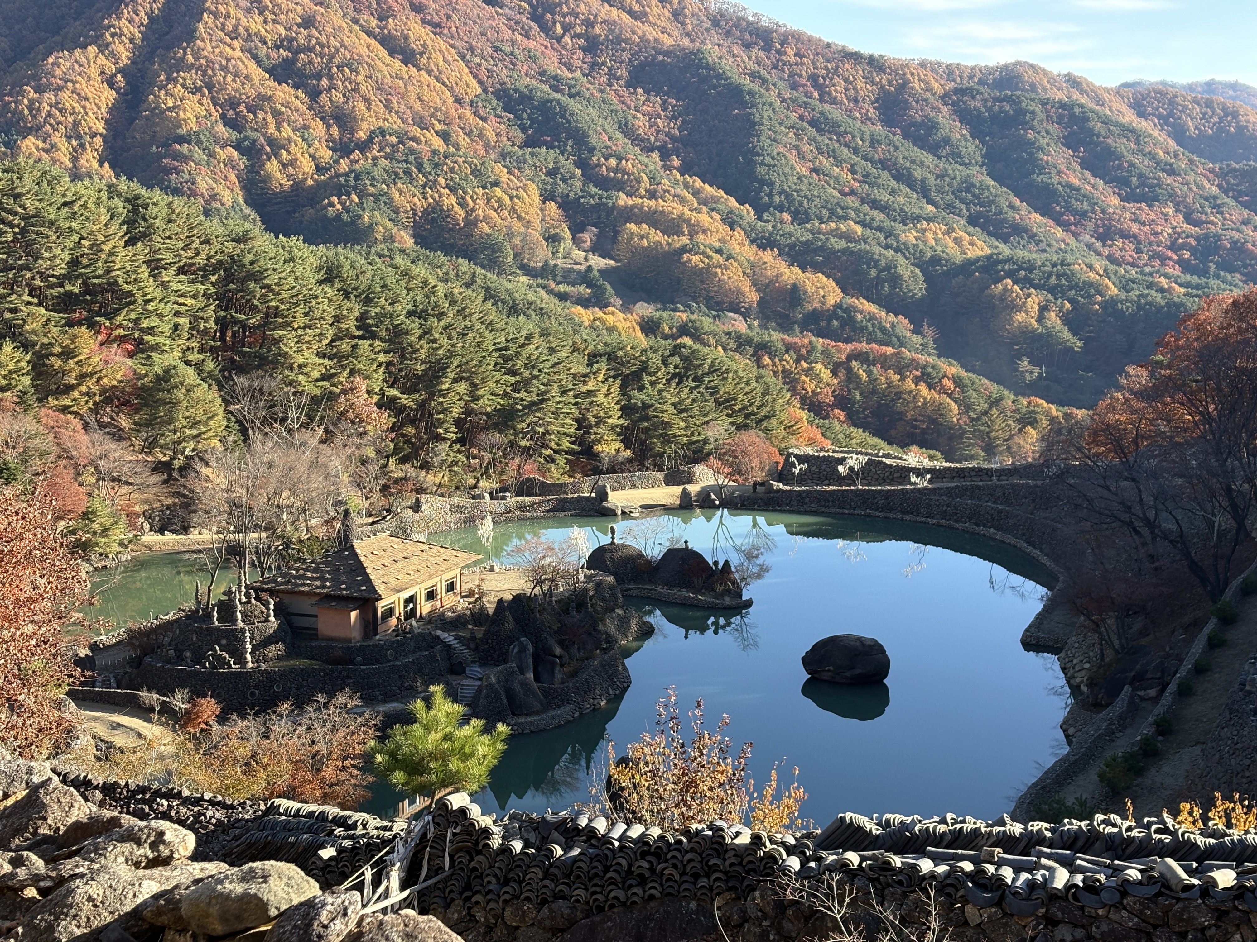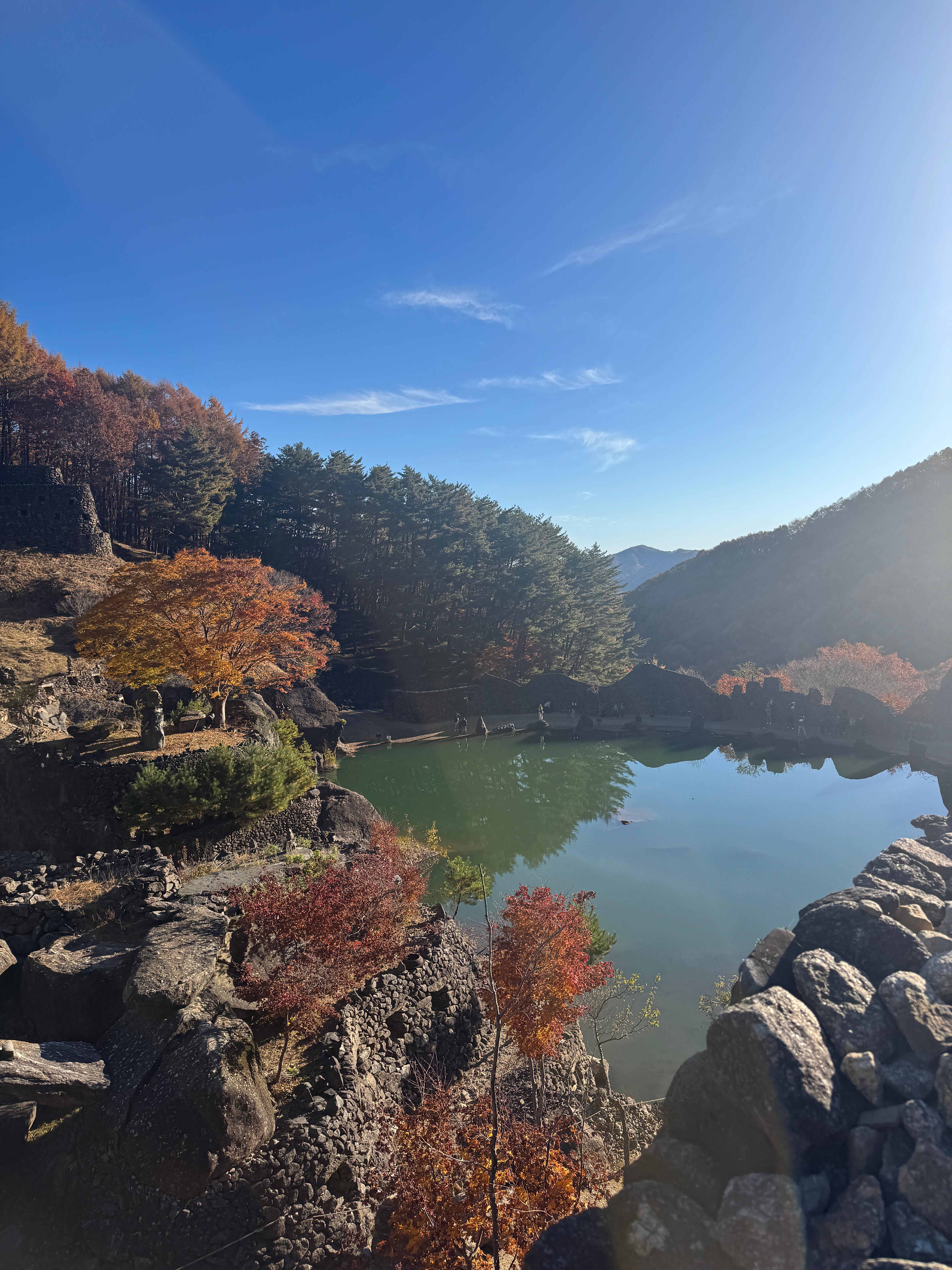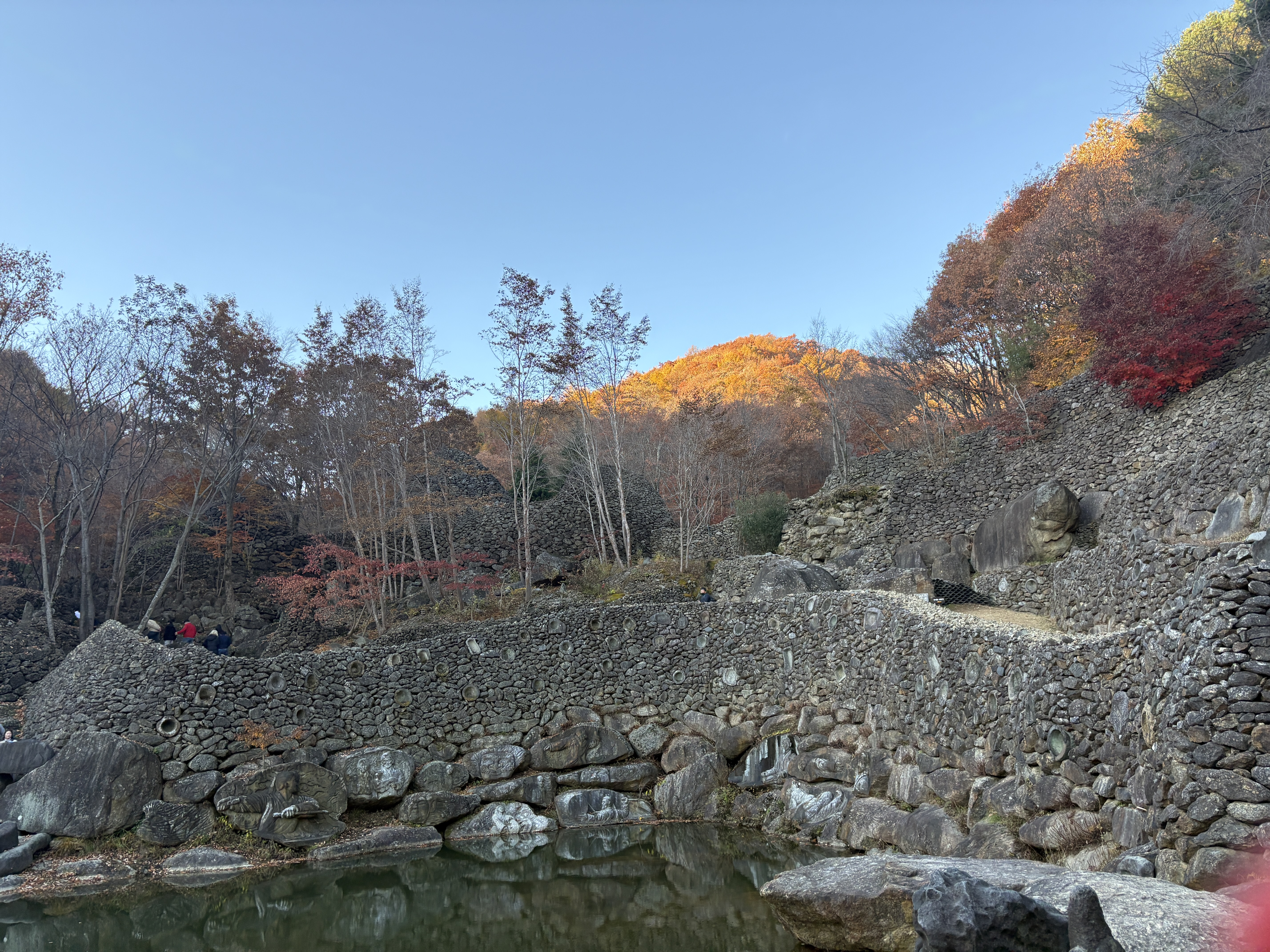 낮은 산을 등산하는 느낌이랄까. 올라가도 계속 되는 돌담길과 성처럼 쌓은 돌, 돌에 새겨 놓은 여러 그림들, 볼 것이 많았고 11월이라 단풍도 제철이었다.